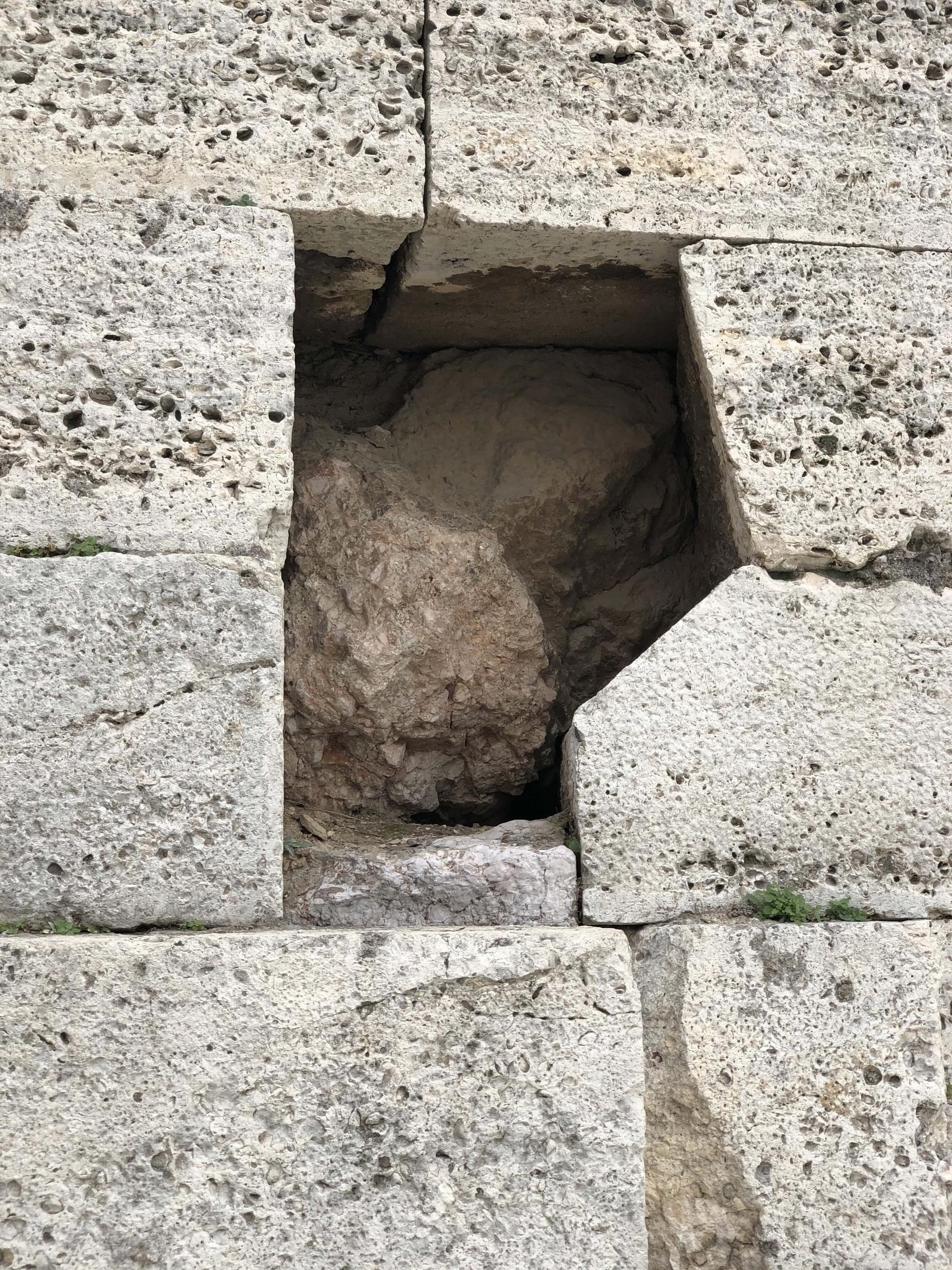 In our latest episode, The Athenian Acropolis, Throughout the Ages, we mention that there are a few visible remnants of the Late Bronze Age fortifications on the Acropolis. Because these are tucked away and not signed, we wanted to post a couple of pictures so that curious visitors can find them more easily.